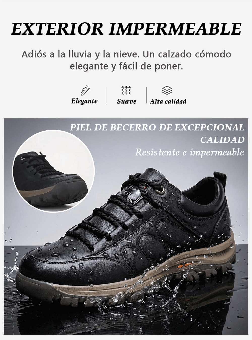 ⚡ ¡50% de Dto. SOLO HOY! Zapatos de Piel de Becerro Italiana. Máxima suavidad, soporte de arco y alivio inmediato del dolor.-Resistente al agua y Antideslizante