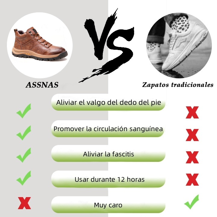 ASSNAS es un calzado ergonómico, cómodo y que alivia el dolor, ofreciendo una experiencia de uso completamente nueva. A diferencia del calzado tradicional que restringe el movimiento de los dedos, nuestro diseño ofrece a tus dedos un espacio ilimitado para moverse libremente. Dile adiós a la tensión y el dolor en las piernas y disfruta de una libertad de movimiento sin restricciones. Diseño con soporte para el arco del pie. El soporte para el arco del pie proporciona un soporte uniforme, mejorando la postura y el equilibrio. Usar calzado con soporte para el arco del pie puede reducir el dolor en pies, piernas y espalda baja, permitiéndote ser más eficiente y concentrado en tu trabajo diario.