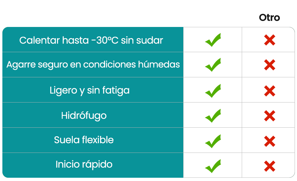 Disfrute de unos pies cálidos y agradables incluso a -30 °C, sin acumulación de calor.