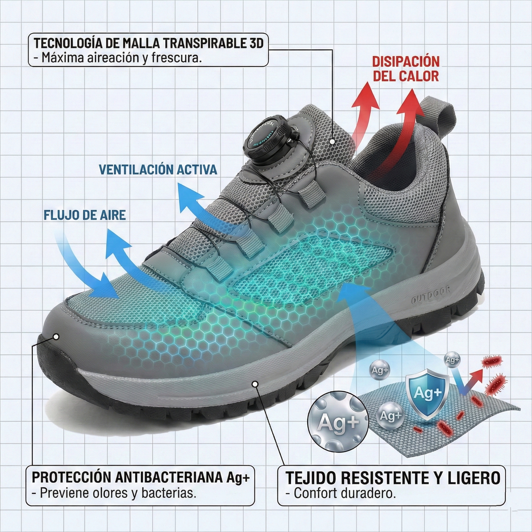 (🔥 -50% DTO) Zapatos de Senderismo Ultraligeros Unisex | Comodidad Total: Soporte Plantar, Antideslizantes y Antibacterianos. ¡Camina sin cansarte!
